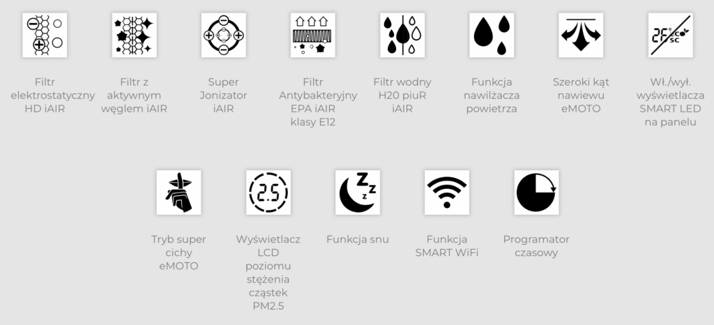 ✔ Jonizacja i filtracja PM 2.5, alergenów, wirusów